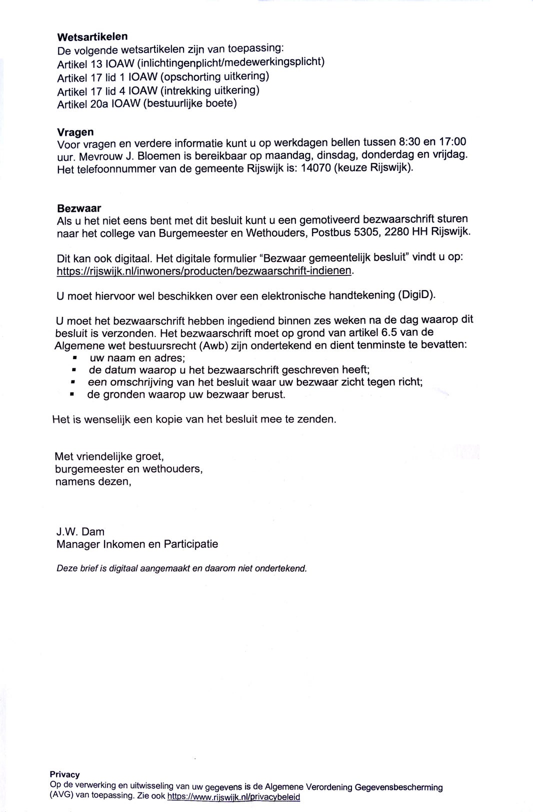 Geachte heer/mevrouw,