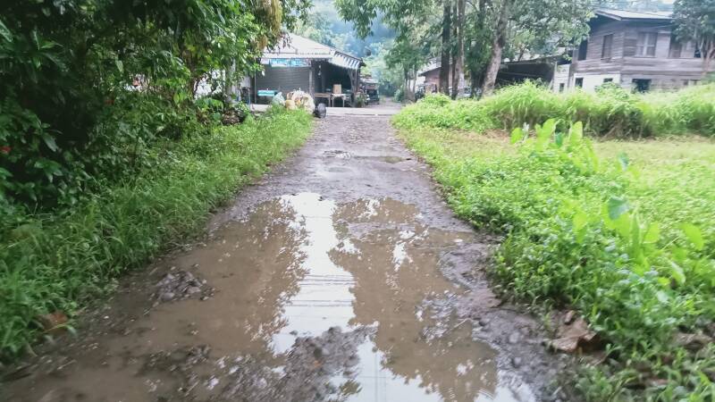 First thing this morning, doing the morning watch, making coffee and getting bread. Slis bread and pandosal. The last few days it has rained heavily and large puddles on the road reflect the sky. But before I leave, I have to put the weekly garbage at the side of the road. An activity that is often forgotten here. Vaajk I think: why do people want to throw away as little as possible here and consider as much useful again as possible?